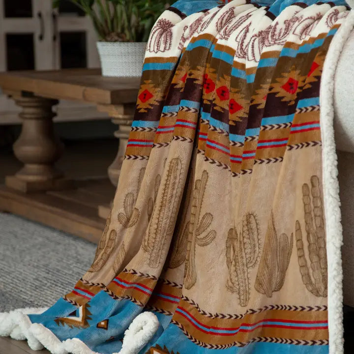 This Cactus Plush Throw features a soft and cozy Sherpa backing, perfect for those cold winter days. The cactus design is unique and sure to make a statement in any room of your home. Enjoy a snug and stylish way to stay warm! 54" x 68"
