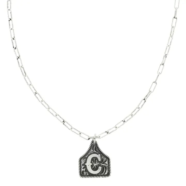 Western Initial Cattle Tag Pendant Necklace ~ C