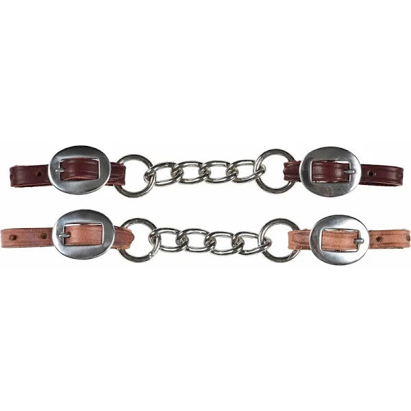 The Berlin Custom Single Chain Curb Strap Made from latigo leather.
