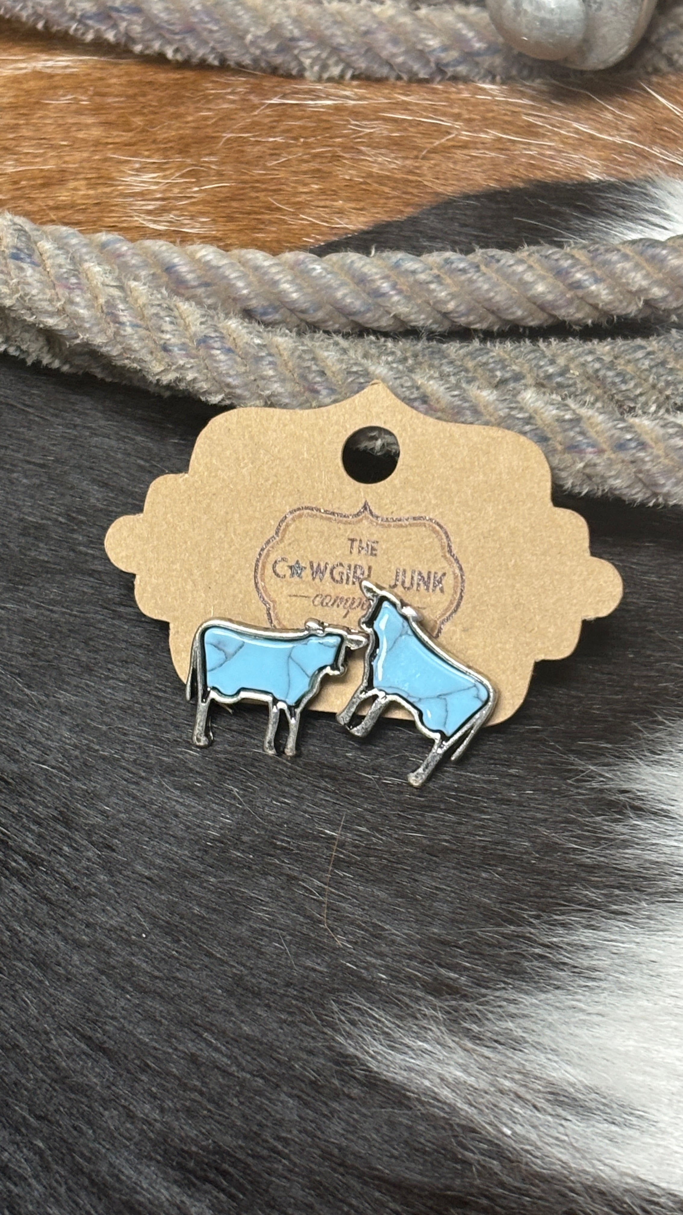 Western Turquoise Animals Stud Earrings ~ Cow