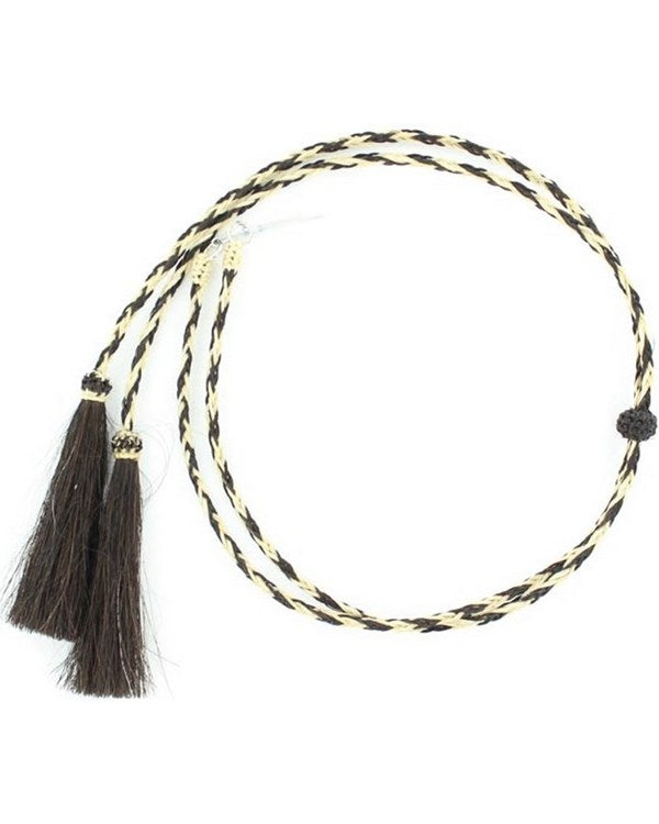 Cowboy hat stampede string features braided horsehair's with tassel horsehairs at end to accent. Fastens securely to cowboy hat with two metal cotter pins. Dress up any hat with a little of personality. One size fits almost any hats, so make your favorite hat look new again. Get a new look for an old favorite western hat, it as simple as take off old band a put new hat band on. Braided stampede string is durable and long lasting for that old favorite friend, your hat. Can be placed around chin to secure your hat down. Approximately 24 inches long