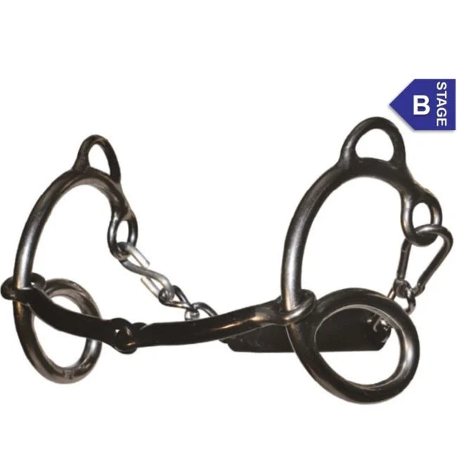3” Cheeks • 5 1/2” Mouth • 3/8” Smooth Sweet Iron Snaffle. The unique design of this bit offers direct control similar to a ring snaffle, while offering the additional control of curb pressure. It can serve as a training snaffle or as a transition bit for a horse that is ready to move along in the bitting process. The mouthpiece is made of sweet iron which will naturally rust into a light patina. The rust creates a sweet taste for the horse and makes the bit more acceptable and increases salivation for a supple mouth.