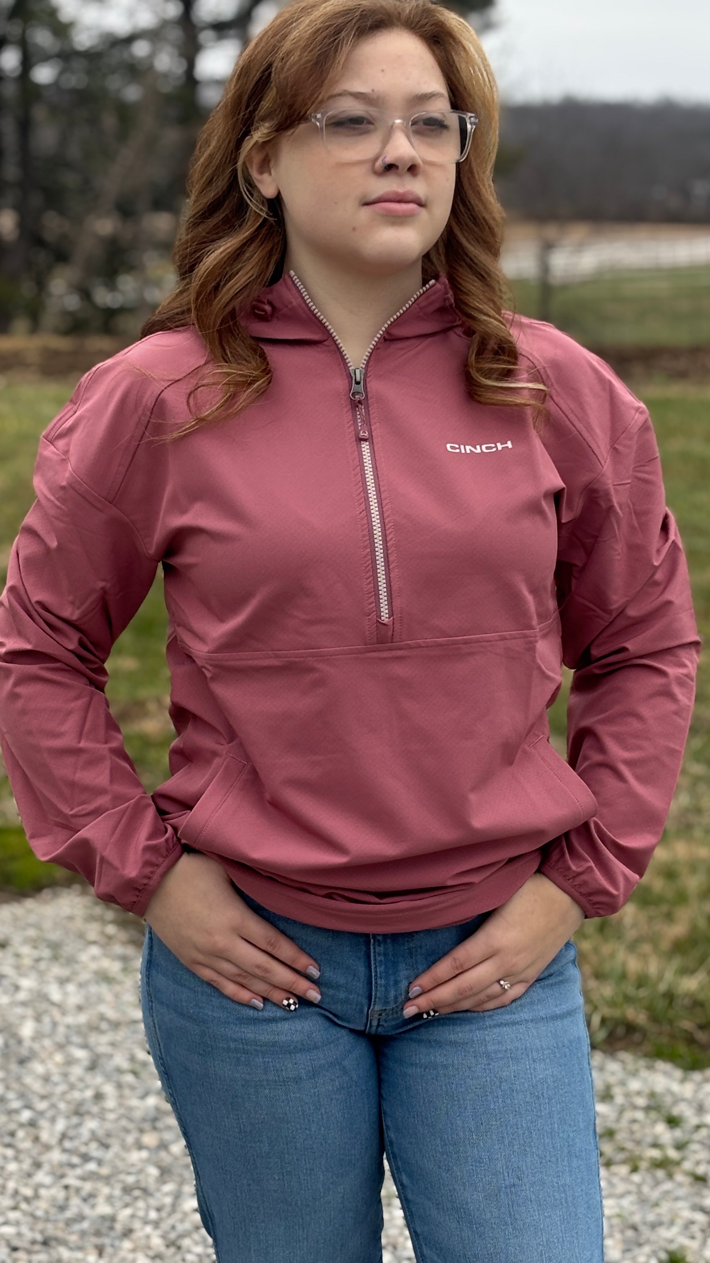 Rock a cozy vibe in this Cinch women's pullover, featuring a fun pink hue that's ready for anything. The half-zip design gives you easy layering options, while the drawstring hood and hem let you dial in the perfect fit. Kangaroo pocket keeps your essentials close, and the stretchy polyester-elastane blend moves with you all day long.