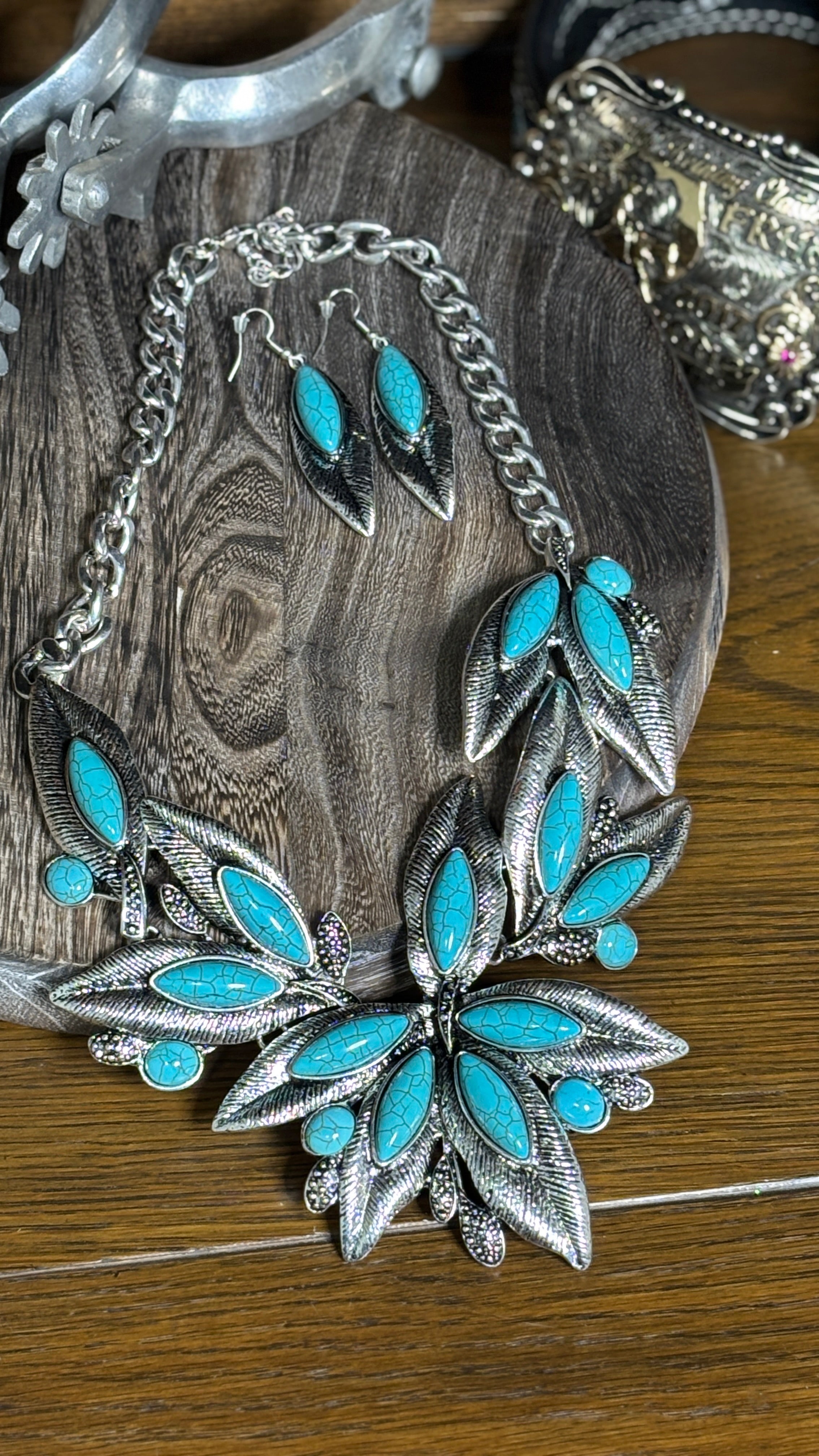 The Necklace Is A Striking And Vibrant Jewelry Set That Beautifully Combines Earthy Bohemian Aesthetics With Rugged Western Charm. 11" length earrings 3"