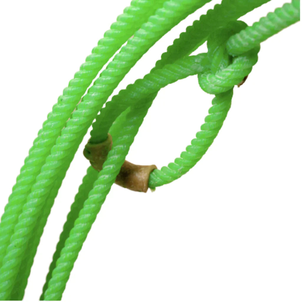 The Frio head rope is our new four-strand nylon-poly blend with our counterbalanced core. Fluorescent green and small in diameter for a fast feel, The Frio head rope boasts an even weight and smoothness that makes it adaptable to all weather conditions. The Frio is the rope of choice for Lone Star pros Tanner Tomlinson and Manny Egusquiza.
