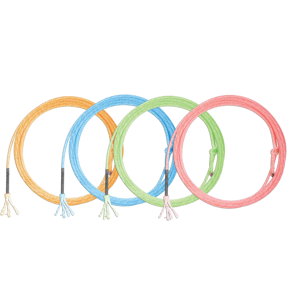 The Kid Rope is ideal for our little roper athletes! Light and easy to handle, this 18-foot rope is perfect for play time. Four fun colors - orange, blue, green and pink.