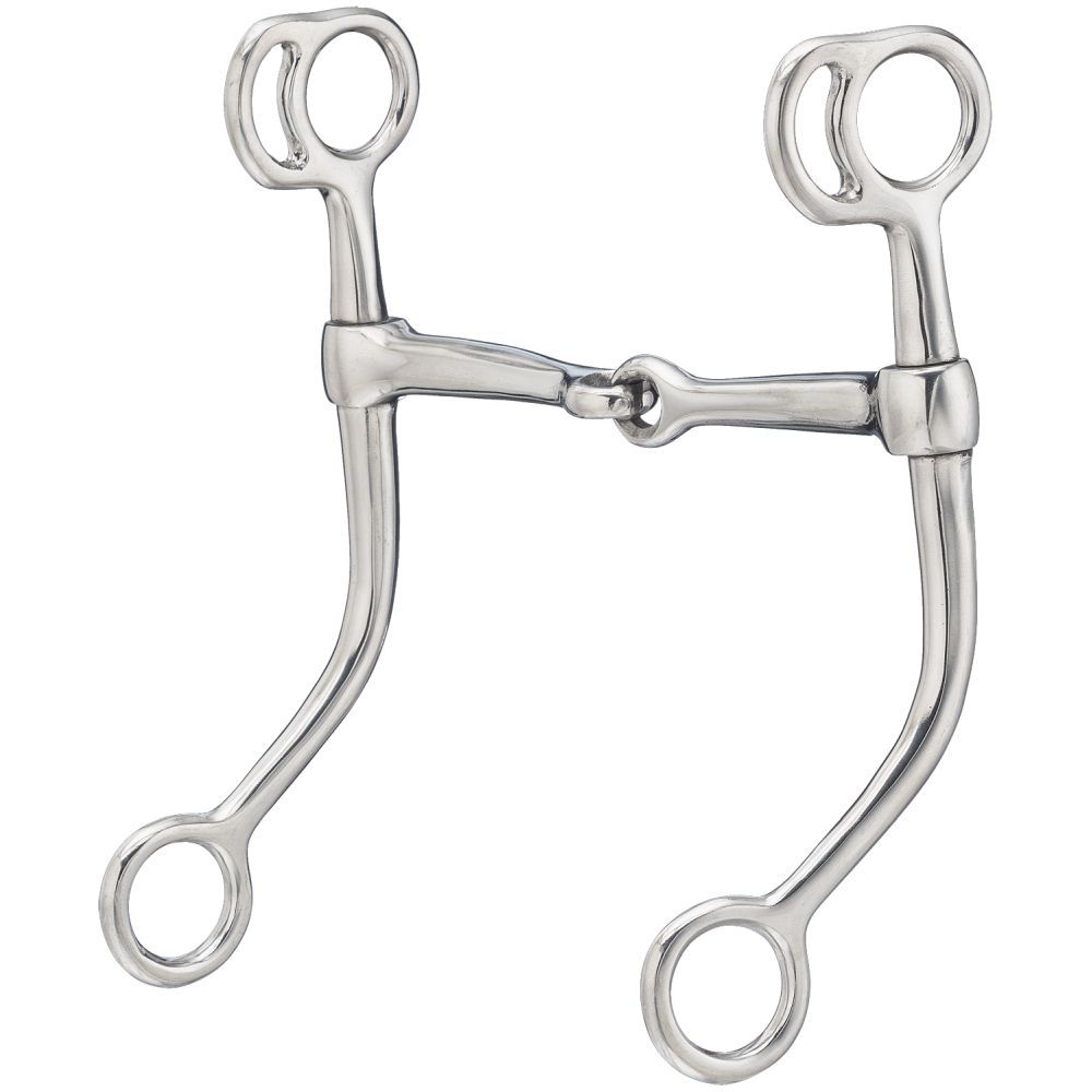 Our Training Snaffle is made from quality stainless steel and features loose cheeks with a slight bend for mild leverage effect. The wide single-jointed snaffle mouthpiece works well for larger breeds. Popular training bit for many western disciplines. The addition of a curb chain to this bit can help increase speed, rating, and stop.