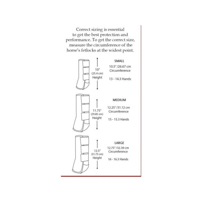 The boot's soft, padded neoprene lining provides an ultra-lightweight yet secure fit, conforming to the shape of your horse's leg without restricting movement. Its contoured design at the top allows for flexion of the tendons, ensuring natural movement and preventing any rubbing that could cause discomfort. The boot features a triple Velcro closure around the cannon bone, offering stability and security, while still allowing your horse to move freely. The wraparound closure with Velcro cradles the fetlock for maximum protection, making this boot perfect for all types of equine sports. Double-stitched for added strength, this boot is suitable for both front and back legs, ensuring full coverage and reliable protection in any setting.