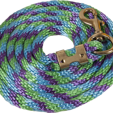 5/8″ x 9′ poly lead rope with 7/8″ brass plated bolt snap.