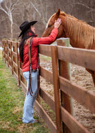 - Red quilted puffer jacket.